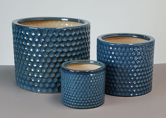 TS154AQ - Dimple Cylinder - Aqua - S/3: 12"D x 10"H, 8"D x 8"H, 6"D x 5"H - 025734411939, 025734411946, 025734411953