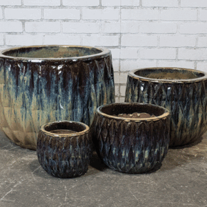 | NT229MB | Eldorado Planter - Matte Black - S/4 - 21"D x 15"H, 15"D x 11"H, 11"D x 9"H, 8"D x 7"H -025734343056, 025734343063, 025734343070, 025734343087 |