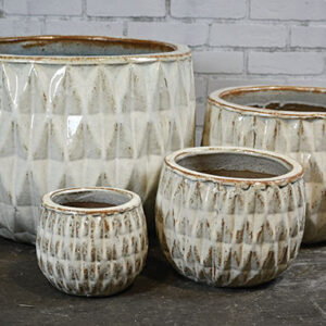 | NT229WH | Eldorado Planter - Milky White - S/4 - 21"D x 15"H, 15"D x 11"H, 11"D x 9"H, 8"D x 7"H -025734343056, 025734343063, 025734343070, 025734343087 |
