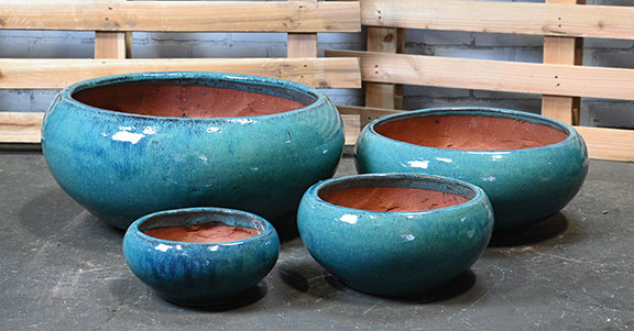 | GM823DG | Low Leo Planter - Ocean Green - S/4 - 22"D x 10"H, 17"D x 7"H, 12"D x 6"H, 9"D x 4"H - 025734901102, 025734901119, 025734901126, 025734901133 |