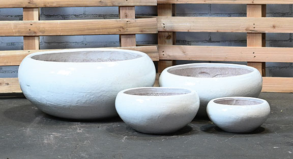 | GM823WH | Low Leo Planter - White - S/4 - 22"D x 10"H, 17"D x 7"H, 12"D x 6"H, 9"D x 4"H - 025734901102, 025734901119, 025734901126, 025734901133 |