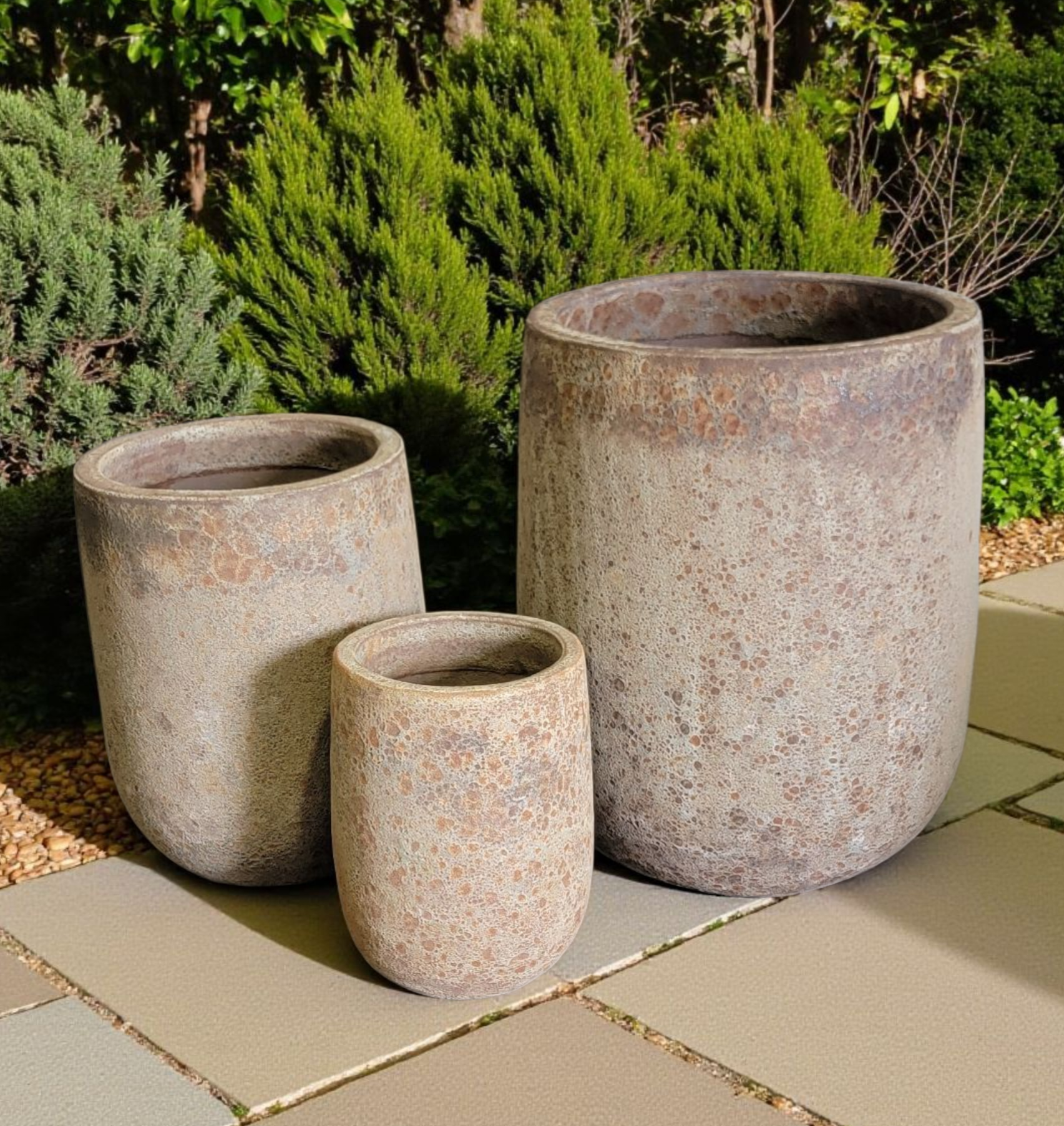 | NTB206BR | Ruvido Planter - Bubble Rust - S/3 - 20"D x 27"H, 18"D x 23"H, 14"D x 18"H - 025734343445, 025734343452, 025734343469 |