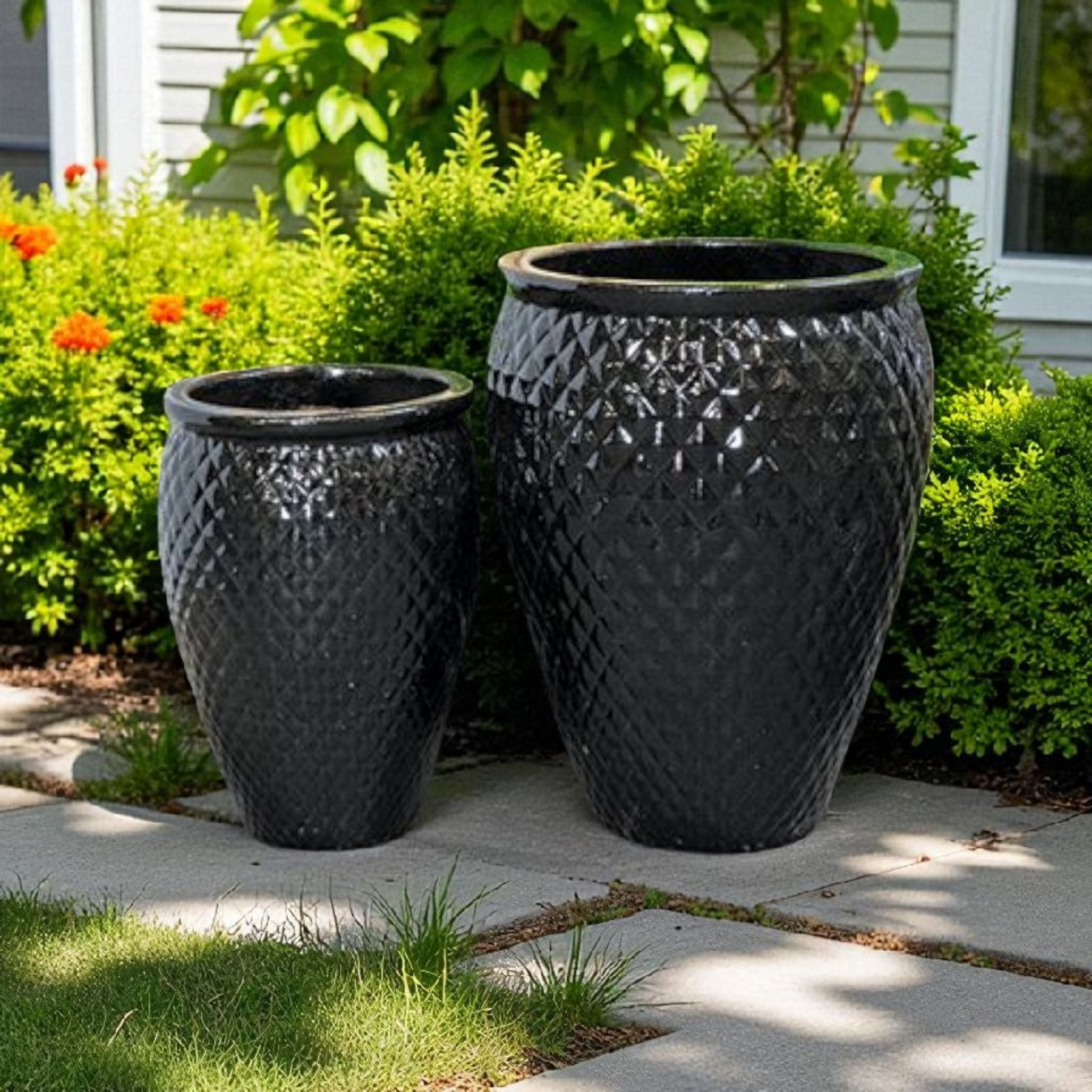 | NT205GB | Tana Urn - Gloss Black - S/2 - 20"D x 29"H, 14"D x 21"H - 025734911224, 025734911231 |