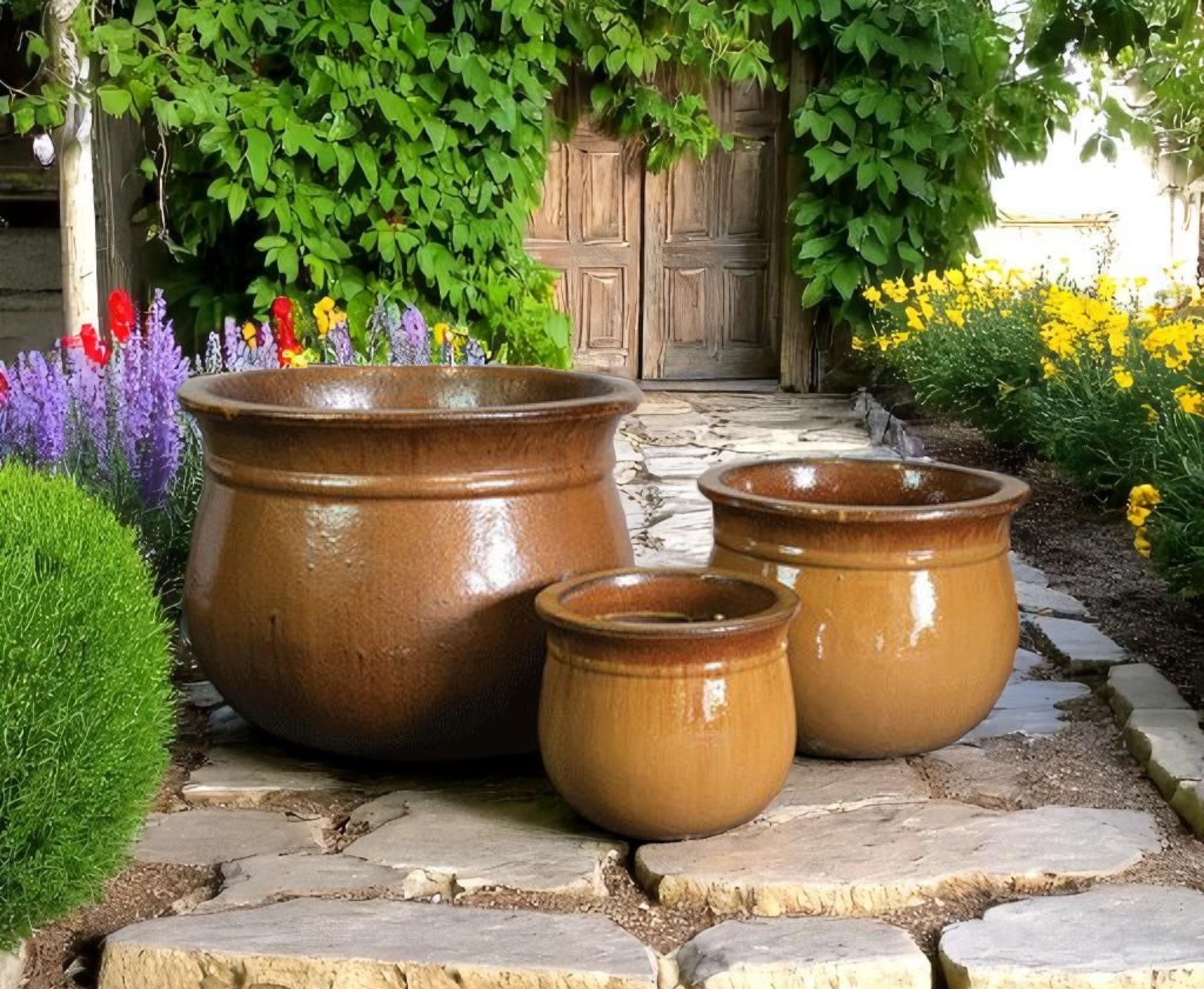 | NT454HN | Valencia Planter - S/3 - Honey - 23"D x 18"H, 16"D x 13"H, 12"D x 10"H - 025734911279, 025734911286, 025734911293 |